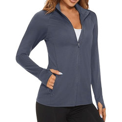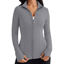 سترات رياضية عصرية خفيفة الوزن للنساء بسحاب من صالة الألعاب الرياضية سترات بغطاء رأس يوجا ملابس للجري مع جيب